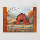Vintage Red Barn Autumn Illustration Holiday Postcard