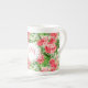 Vintage Red Hibiscus pattern Monogram Bone Mug
