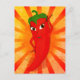 A cute cartoon pepper posing for a picture. Custom postcards. Superstar style. Vintage style applied to the print.