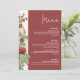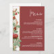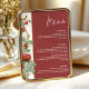 This romantic wedding menu template features deep burgundy tones, vintage red roses, and elegant floral accents along one side. Ideal for fall or winter weddings, the bold background and Art Nouveau-inspired detailing create a warm and refined look. This 5x7 menu is perfect for formal dinners, plated receptions, or buffet events, and can be paired with matching pieces for a beautifully cohesive wedding suite.
