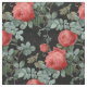 This bold and beautiful floral design showcases red roses and green leaves on a black background.