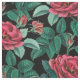 Vintage watercolor drawing red roses pattern with emerald leaves on a black background.