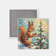 Vintage Red Squirrel Pine Tree Christmas Magnet