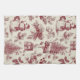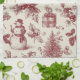 A classic red toile Christmas pattern kitchen towel beautifully illustrated with holly leaves, berries, snowmen, pine branches, wrapped gifts, and evergreen trees on a cream background. The intricate linework captures the warmth and charm of Victorian-era holiday art. This elegant and nostalgic pattern brings timeless festive cheer to any project, combining nature-inspired motifs with traditional Christmas imagery.