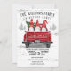 Invite your holiday party guests in style with this rustic themed Christmas Party invitation for dog lovers. The design features a vintage red truck with Christmas tree and three golden Labrador retrievers on a background of white weathered wood. Personalize with your family name and all of your party details. The back of the card is red buffalo plaid with a sprinkling of snow. Designed by world renowned artist ©Tim Coffey.