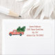 A vintage red pickup truck with two Christmas trees in the back. Personalize with your own information.