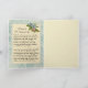 Featuring a vintage religious image of St. Joan of Arc in armour holding the flag of France with a floral border and vintage background. A prayer asking her intercession is on the front and also on the inside of the card. St. Joan's feast day is celebrated May 30.