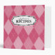 Personalized vintage retro argyle diamond pattern recipe binder book Custom cookbook with personalizable name, fashion print and elegant label. Pink or custom colour. Cute personalized cooking gift idea for women; ie mom, mother, sister aunt, grandma etc. Customizable colour. Chic design for kitchen.