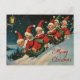 Vintage Retro Christmas: Sledding Elves Holiday Postcard