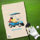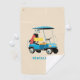 Bring the joy of the course with this vintage retro blue golf cart illustration loaded with a golf bag on a light cream vintage style background color. Designed for true golf lovers who live for tee times, fresh greens, and that perfect shot, this golf towel captures the freedom, fun, and obsession that only the game can give. Personalize it with a name or initials in a light blue font to make it truly theirs. A thoughtful, fun present for dad, boyfriend, husband , or partner who feels most at home on the fairway. Browse our matching products.