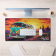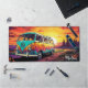 Brighten up your workspace with this vibrant and retro vintage hippie travel van desk mat! Featuring a colourful, psychedelic design of a classic van during the 70s against a stunning sunset backdrop, this large desk mat offers ample space for your keyboard, mouse, and other desk essentials. The vivid colours and intricate details create a cheerful and nostalgic atmosphere, making it perfect for fans of vintage aesthetics and road trip adventures. The high-quality material ensures durability and smooth mouse movement, providing both style and functionality. Customize it with your name or a personal message to make it uniquely yours.