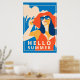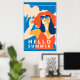 Add some flair to your decor with this fun vintage hello summer poster featuring a retro illustration of a woman in sunglasses on vacation at the beach!