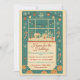 Designed in a nostalgic teal and cream palette with red festive accents, it features a charming Christmas village viewed through a frosty window — glowing lights, candy canes, and cookies framing a warm message of holiday cheer.