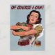 Vintage retro, "Of course I can" postcard.