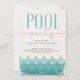 Shades of Teal, Grunge Vintage Theme, Retro Ocean Waves Pool Party Birthday Invitation.