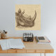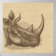 Stylish square poster with vintage brown tinted rhino head illustration on light tan "burlap" background