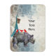 Easily personalize this pretty romantic blue floral garden collage of a funny cute vintage rhino and Eiffel tower Paris with your name, text or monogram initials,. Visit the VINTAGE PRINTS STORE for matching products. CLICK CUSTOMIZE to adjust the text size, position, colour or font.