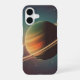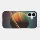 Retro illustration of a planet surrounded by rings, in a soft cosmic palette reminiscent of old posters.