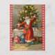 This holiday postcard features a wonderful vintage Victorian era fine art image of Santa ringing a bell in front of a Christmas tree lit with candles. On the floor beside him are dolls and other toys. The image is framed in red with white snowflake borders. The front says "Joyous Christmas" at the top, with additional original text at the bottom. For hundreds of vintage and contemporary Christmas images on a variety of products, check out the "Christmas" section in our store.