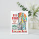 This postcard is a reproduction of a vintage lithograph advertisement for the Ringling Bros circus and Big Bingo, the "biggest brute that breathes," a "giant two-story elephant" who is part of the show.