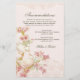 This design is a romantic choice if you are looking for a whimsical wedding look. Light pink damask background, with soft blush pink variations for a formal vintage visual. Two white birds, in love, looking at each other in the eyes, sitting on a branch of tree with delicate pink flowers. Perfect for vintage victorian wedding themes, as well as pink and golden wedding theme colours