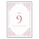 Vintage Romantic Pink Frame Elegant Script Table Number