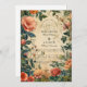 An enchanting floral design inspired by old-world botanical art, featuring lush antique roses, deep greenery, and warm vintage textures. The ornate frame and garden illustration create a romantic, heirloom-worthy look perfect for couples who want a classic, storybook aesthetic. Elegant typography sits beautifully against the weathered parchment background, making this a timeless choice for a refined and nature-loving celebration.