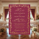 Elegant floral line art wedding invitation with a burgundy colored, rustic chinoiserie ornamental frame design, elegant vintage inspired handwritten font, and real foil.