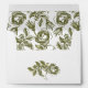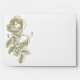 Custom envelopes with faux gold letters and an elegant vintage rose etching in white and faux golds, and a rose pattern on the inside.