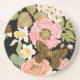 Vintage Roses Peonies: Black Floral Pattern Coaster