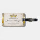 Vintage Royalty Property of Luggage Tag. Featuring a golden crown with jewels sitting atop a fancy filigree parchment paper background. Edges are adorned with flourishes and faux diamonds and pearls. A classy & sophisticated luggage tag.