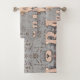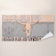 Un vieux cow-boy rustique de l'ouest en détresse look taureau crâne ensemble de serviettes de bain. Script vintage gris beige. Décor de salle de bain d'inspiration agricole. Design imprimé chic, tendance et sauvage de la texture animale de ferme ouest. Copyright de l'image Marg Seregelyi Photography.