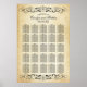 Decorative swirls and flourishes frame this elegant vintage inspired wedding seating chart poster design that features a monogram of the bride and groom names and wedding date, custom template text for twenty-five (25) table numbers and guest names. Design includes elegant black decorative swirls and flourishes. The rustic ivory background is printed with a textured aged parchment paper appearance.