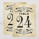 Vintage style wedding table number cards feature decorative swirls and flourishes on both sides of the card. Rustic antique textured background look with black design. Personalize each table number card that you need and add each to your cart individually.