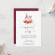 Vintage style flowers engagement party wine tasting invitation with hues of burgundy, blush and sage green designed to be quickly and easily customized to your event specifics.