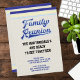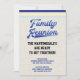 It's once again time to gather all your relatives and reconnect at a family reunion celebration. Get ready for a picnic, trip to the beach or other fun event. Retro vintage style typography in blue colours. Monogrammed with family name. Add details about your event.
