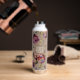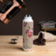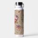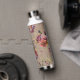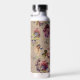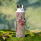 Personalised water bottle with a pretty vintage floral pattern on a rustic, textured look background.