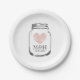 Vintage paper party plates with wedding monogram plus date of marriage. Customizable colour and personalize name initial letters of bride and groom. Elegant typography in rustic country chic mason jar design. Cute romantic design with vintage heart icon. Faded weathered love symbol. Disposable plates for classy wedding, bridal shower, engagement, i do bbq, anniversary or bachelorette party. Customizable background colour. Perfect for outdoor barn wedding in summer around july, august, september.