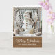 Share festive cheer with this vintage rustic snowman Christmas card, featuring a cozy farmhouse design and nostalgic winter charm. Perfect for sending warm Merry Christmas wishes to family and friends, this classic card is ideal for those who love traditional holiday scenes and rustic country style. Personalize your message inside for a heartfelt touch.