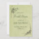 Elegant vintage sage green bridal shower invitation design featuring a floral design in two corners with a bird perched on the top. Comes in sevral colour schemes. This design also comes on many other paper products and postage to suit all your wedding set needs.