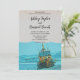 This elegant vintage black calligraphy wedding invitation is suitable for a modern summer destination wedding. The romantic minimalist design features a Vintage sailing boat navy destination wedding invitation