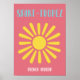 A cheerful, retro-inspired design celebrating the sunny French Riviera. This print features a bold, graphic yellow sun against a vibrant pink background with blue typography. The artwork captures the playful, chic aesthetic of Saint-Tropez, making it an excellent statement piece. Perfect for adding a splash of European summer to living rooms, vacation rentals, offices, or anywhere you want a bright, happy vibe.
