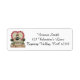 Étiquettes d'adresses de retour faciles à customiser. Illustration vintage amour et romance Victorian Valentine's Day die design avec une fille marchant dans des escaliers portant un plateau de nosegays, petits bouquets de fleurs. Au bas de l'escalier se trouvent des plantes topiaires dans des pots avec le coeur.