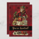 Santa Claus is having great fun in this reproduction of a vintage Christmas card. He's playing a violin as the two children in front of him are holding a candle, reading the sheet music, and singing along with a wonderful Christmas song. At their feet is a bag full of Christmas goodies. Victorian-era Santa Claus was often depicted interacting with children, where these days, Santa only comes when the children are tucked tight in their beds. The vintage Santa card is from the mid-1800s, when Santa was depicted by illustrators as a bit thinner. In this wonderful image, Santa has a red cloak, but a green hat, but not the pointy hat we've become familiar with in this era -- instead, it's surrounded by leaves.