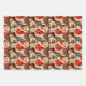 This wrapping paper features a vintage Christmas theme, with a classic depiction of Santa Claus in the centre, holding presents and surrounded by festive greenery. The design includes pine branches, holly, and a little girl giving it a nostalgic and cozy holiday feel. The background incorporates traditional Christmas elements such as gift boxes, greenery with pine cones, and red ribbons, contributing to a festive and joyful atmosphere. The overall aesthetic has a timeless, old-fashioned look, reminiscent of early 20th-century holiday cards.