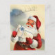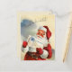 Customizable Vintage Santa Claus holding a gift Christmas postcard.