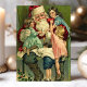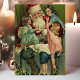 Beautiful vintage Christmas living room scene postcard. This design features a vintage jolly Santa with kids climbing into his lap. What a beautiful retro holiday scene.