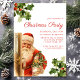 Celebrate the holiday season with this charming Christmas party invitation featuring a vintage illustration of Santa Claus holding gifts. The retro design, complete with holly accents and a candy cane striped back, evokes a nostalgic holiday spirit, perfect for creating a warm and festive atmosphere. Personalize with your event details to make it uniquely yours. This delightful invitation is ideal for any holiday gathering, adding a touch of classic Christmas charm and joyful spirit to your celebration.