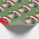 Funny Christmas wrapping paper for cat owners showing a pattern of a vintage painting of a handsome Bengal cat with beautiful yellow eyes and leopard style markings wearing a Santa Claus hat. As he looks so serious I’ve added various slogans in red lettering to the fur on the hat including Bah humbug, Ho ho ho, Merry Xmas, Grumpy Cat and Kiss Me but you can change them to suit with your own greetings or names or delete entirely if you prefer. There’s a festive red border either side. The original hand coloured lithograph print titled The Favourite Cat is by American artist Nathaniel Currier. The paper would be perfect for wrapping gifts for cat lovers and fans of vintage cat art.