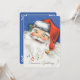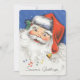 Vintage illustration Christmas holiday image featuring a jolly Santa Claus with a big smile or grin. He is smiling, laughing and wearing a Santa hat with some holly and berries. His bright red hat has a bell on the end that is playing some music and musical notes are floating around. Season's Greetings and Merry Christmas!